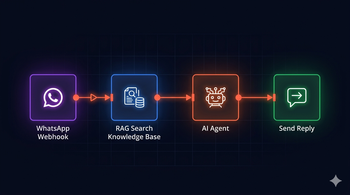 Template workflow n8n yang menggunakan teknik RAG (Retrieval-Augmented Generation) untuk membuat chatbot WhatsApp yang dapat menjawab pertanyaan berdasarkan dokumen FAQ Anda. Upload PDF atau CSV sebagai knowledge base, dan biarkan AI Agent menjawab customer 24/7 secara akurat.